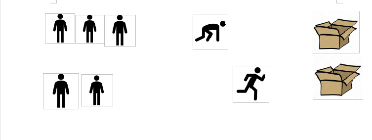 Descripción: Habrá dos caminos distintos delimitados con una caja llena de imágenes de animales al principio y una caja vacía al final. Los niños se dividirán en dos grupos y harán carreras con el oponente del otro equipo corriendo cada uno con el animal que coja de la caja.